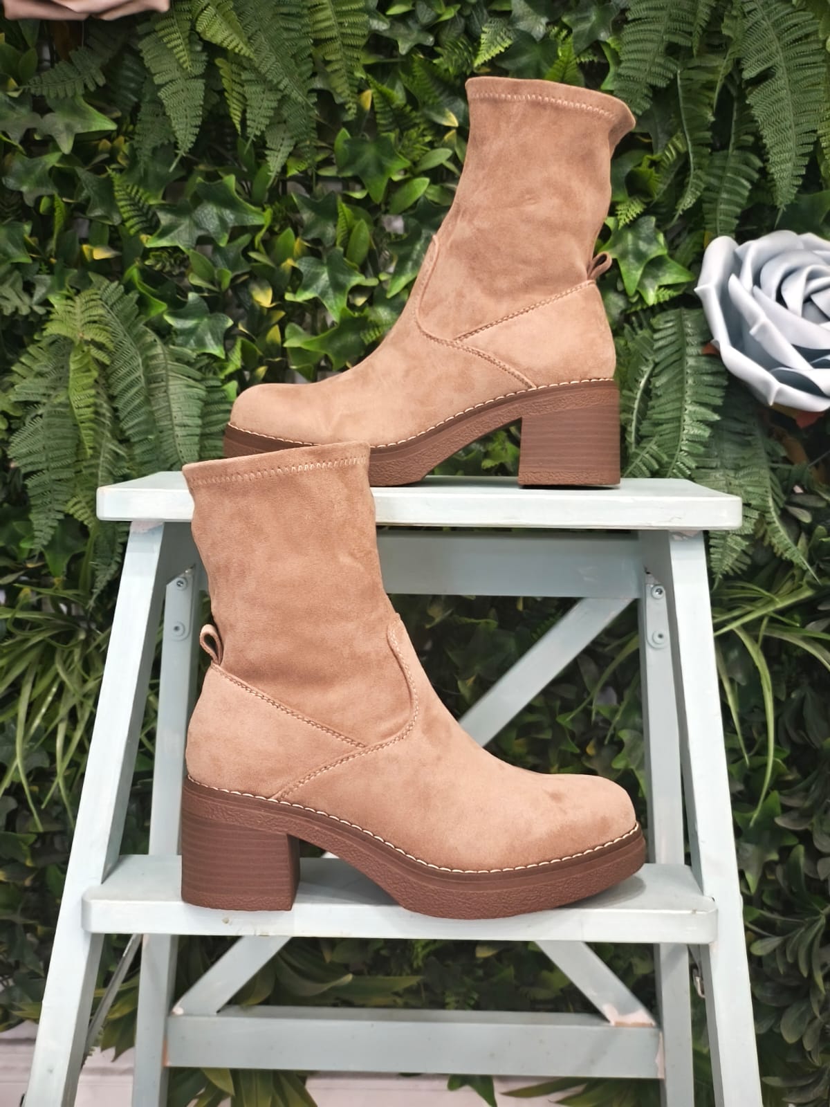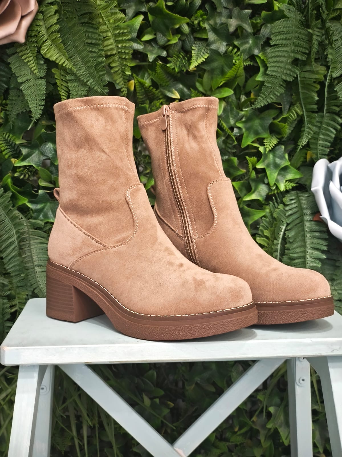Bota de antelina, tipo calcetin con cremallera.